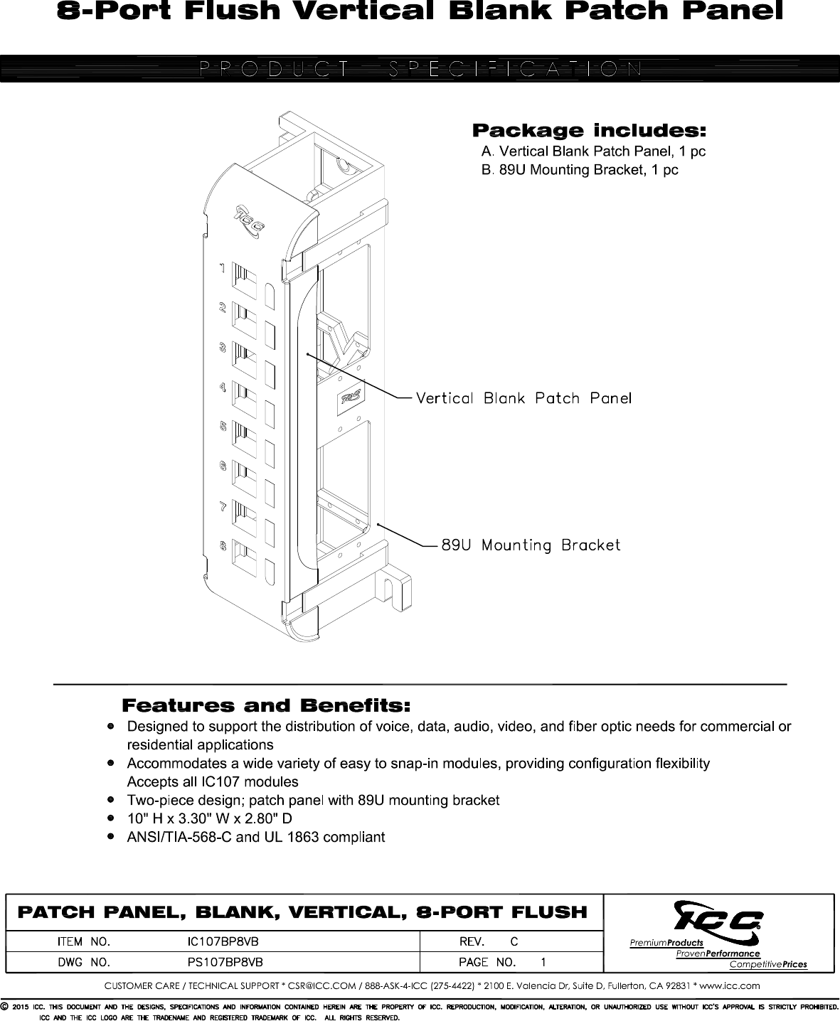 Stöbern Sie online oder laden Sie Datenblatt nach Patchfelder ICC IC107BP8VB herunter. ICC IC107BP8VB patch panel Benutzerhandbuch