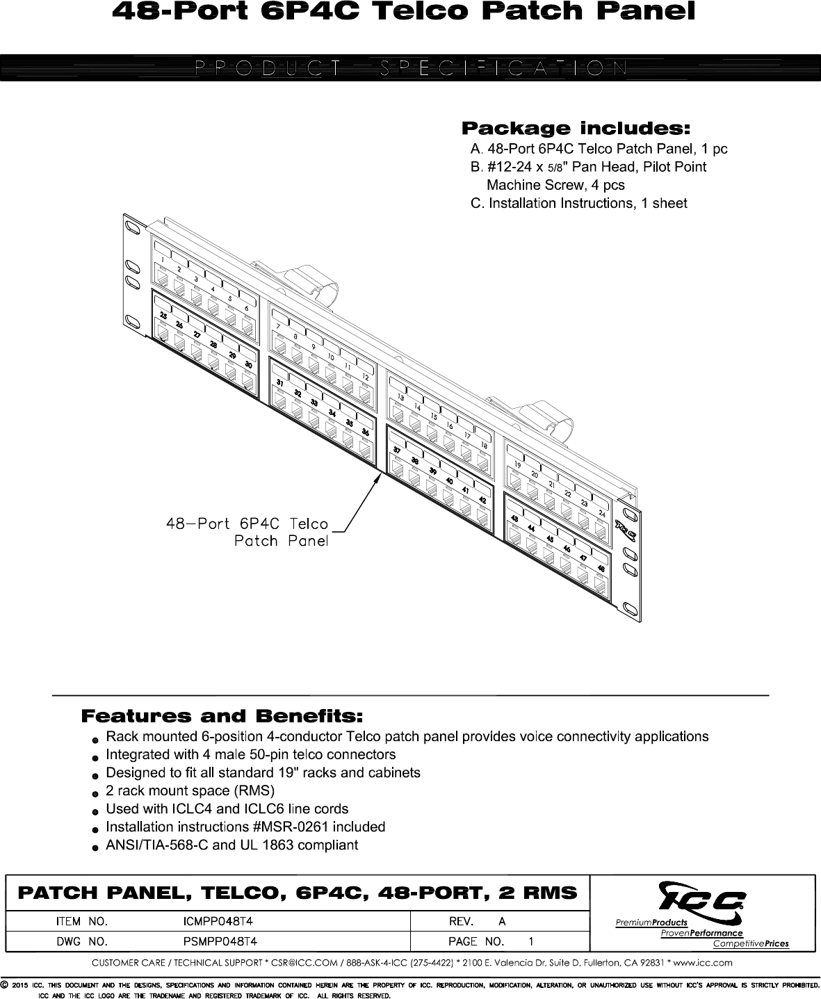 Patchfelder ICC ICMPP48TF4 Datenblatt