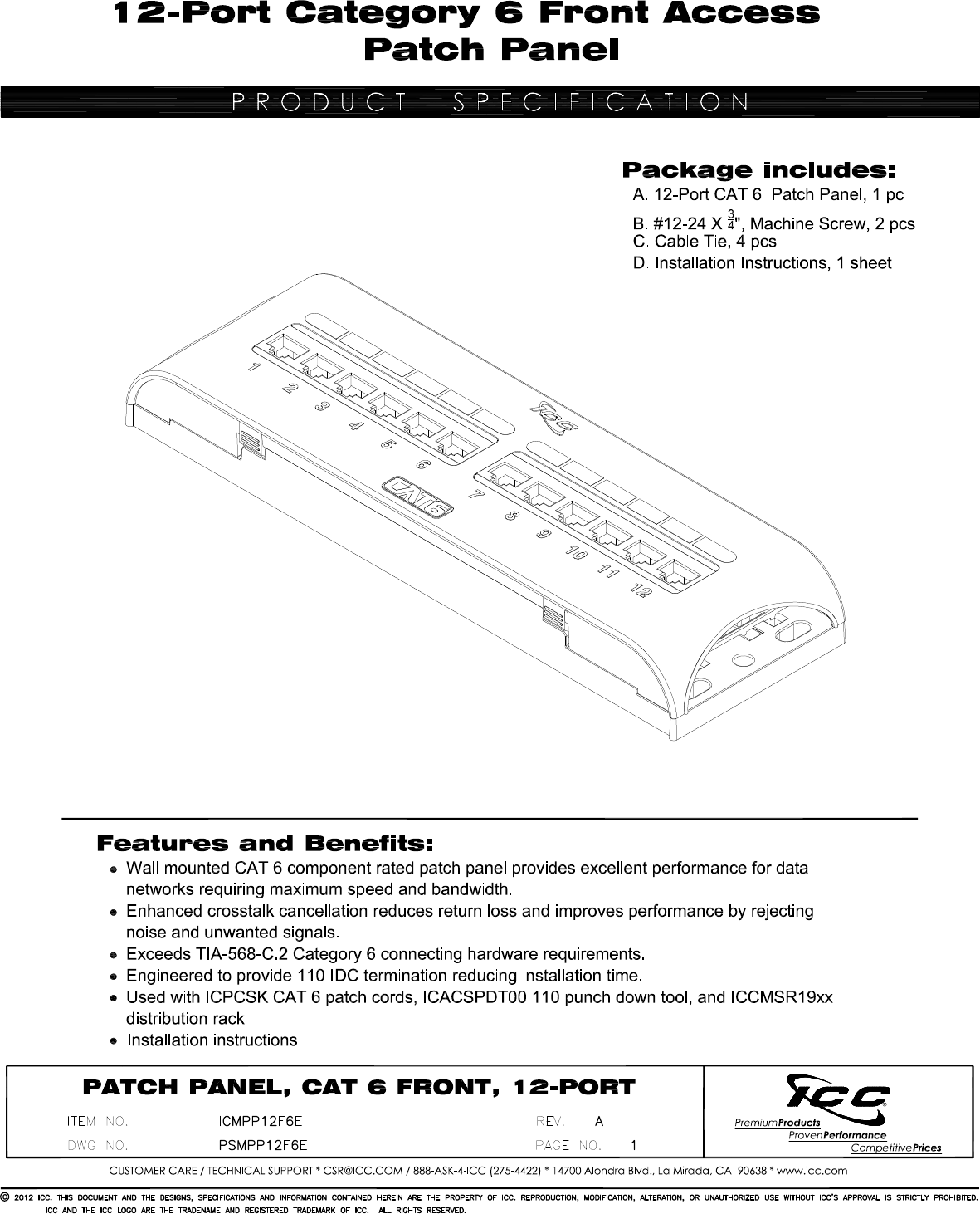 Stöbern Sie online oder laden Sie Datenblatt nach Patchfelder ICC ICMPP12F6E herunter. ICC ICMPP12F6E patch panel Benutzerhandbuch