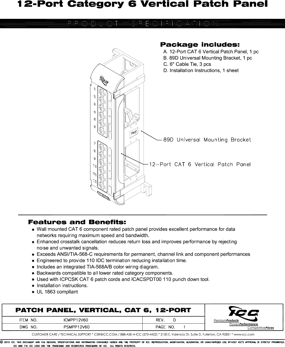 Stöbern Sie online oder laden Sie Datenblatt nach Patchfelder ICC ICMPP12V60 herunter. ICC ICMPP12V60 patch panel Benutzerhandbuch
