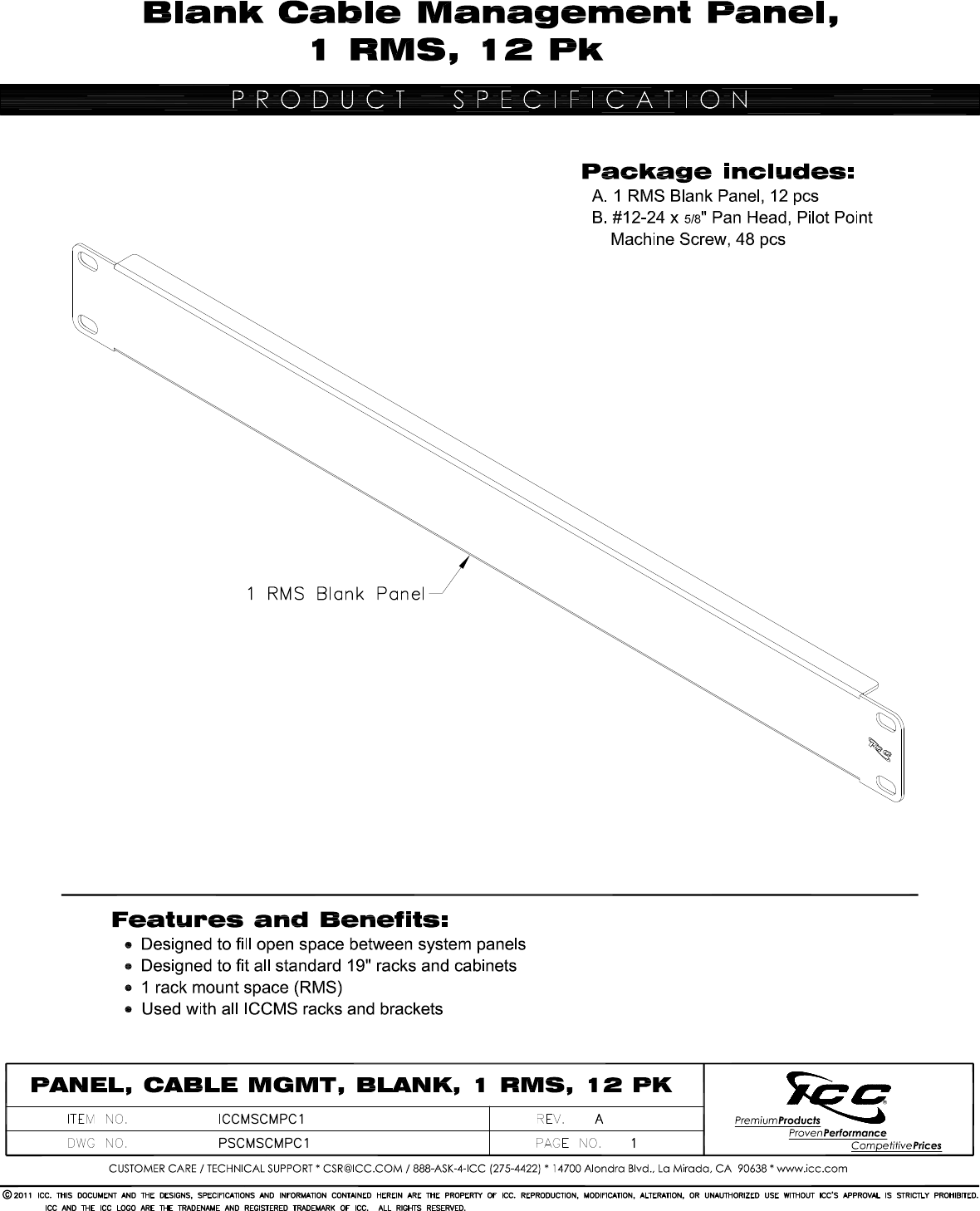 Stöbern Sie online oder laden Sie Datenblatt nach Gestellzubehör ICC ICCMSCMPC1 herunter. ICC ICCMSCMPC1 rack accessory Benutzerhandbuch